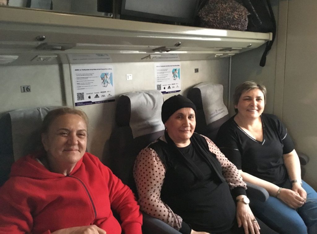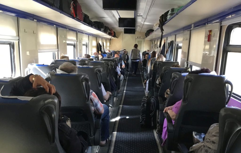 Tren saatimiz geldi. Biletlerimizi aldık ve trene biniyoruz.