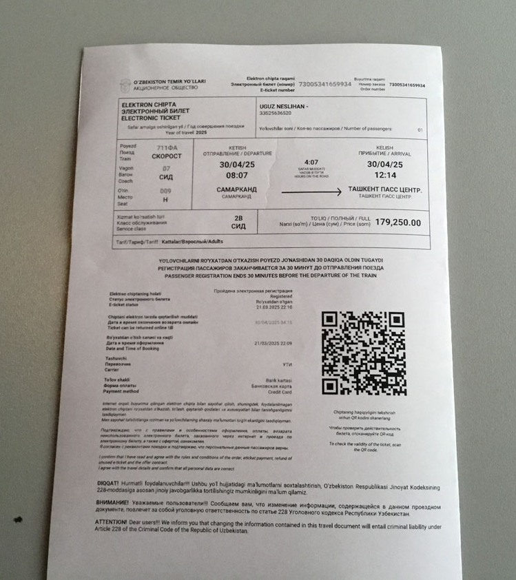 Semerkant gezimizi tamamladık. Sabah erkenden tren garındayız. Rotamız Taşkent. Özbekistan’ın başkenti Taşkent’e hızlı trenle gideceğiz.