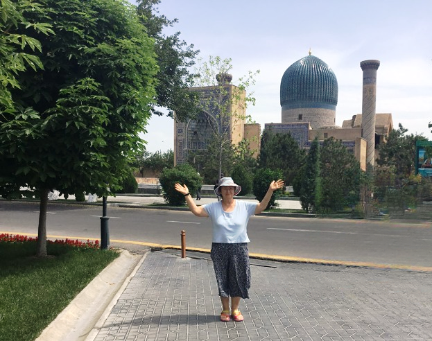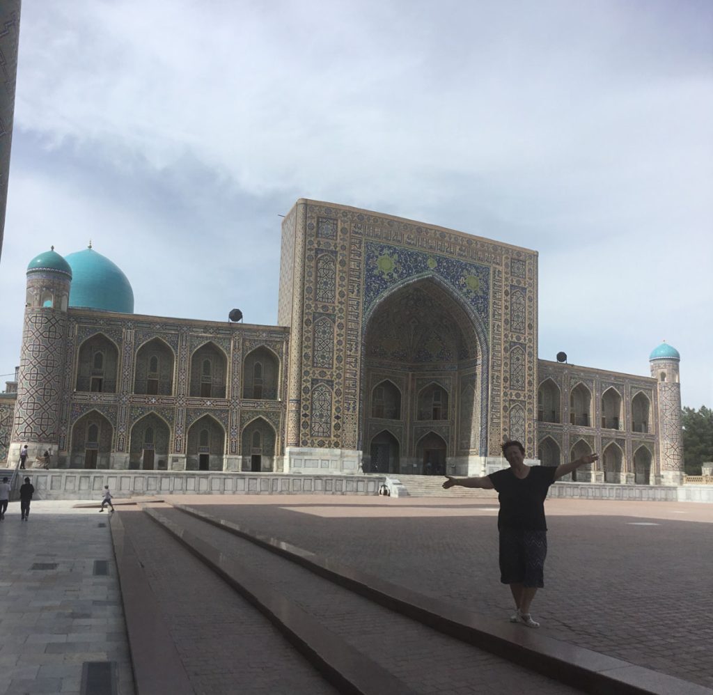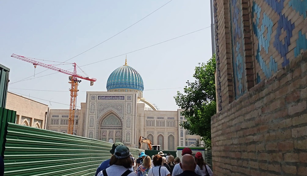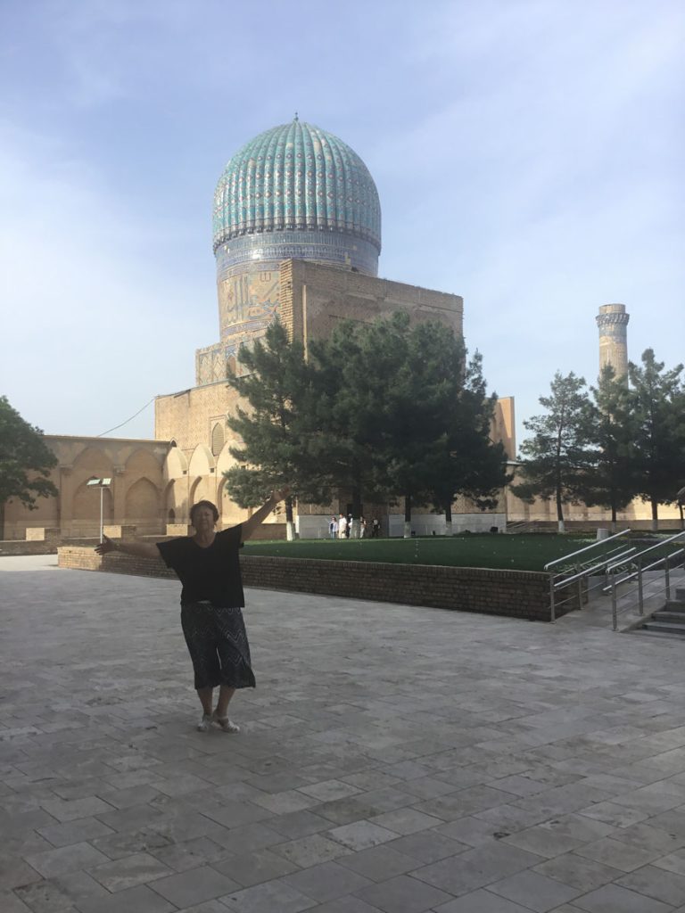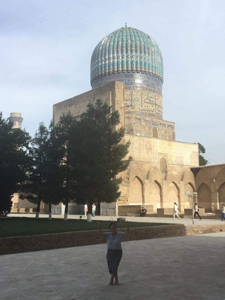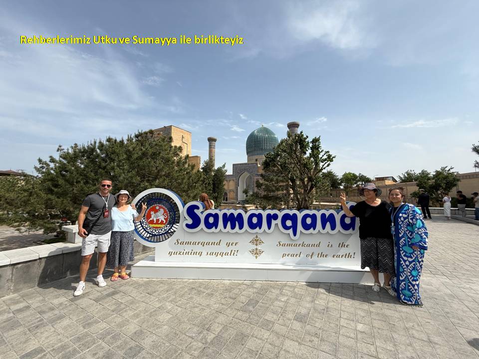 Amir Timur’un türbesinden ayrılarak Bibi Hatun Camisine gidiyoruz. Rehberlerimiz Utku ve Sumeyya ile bir fotoğraf anısı alıyoruz.