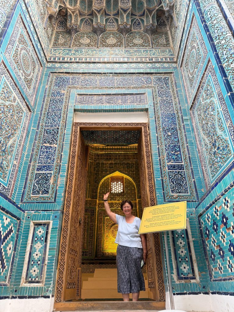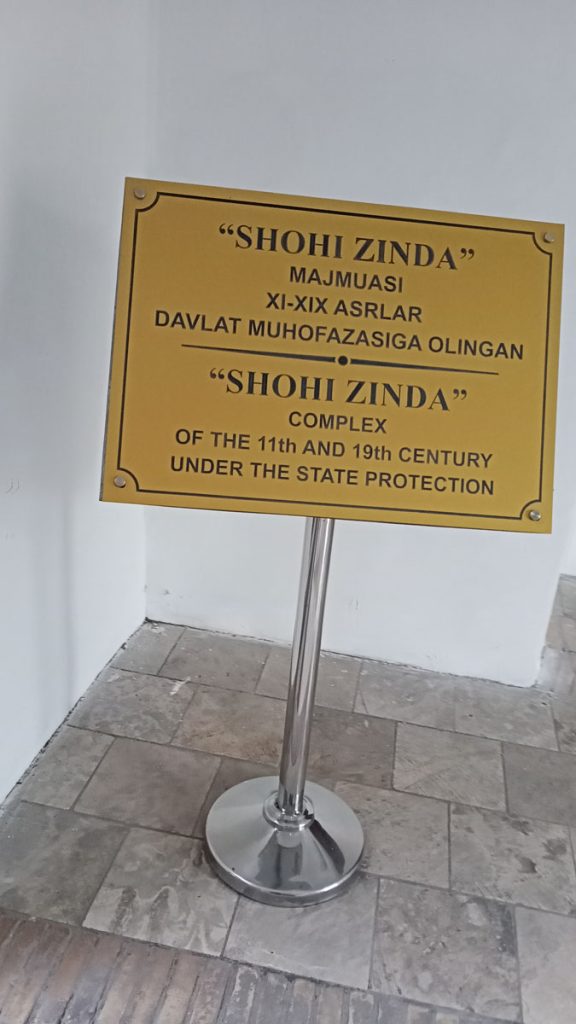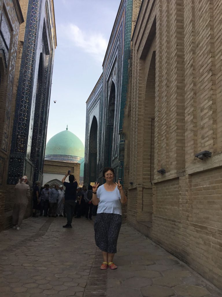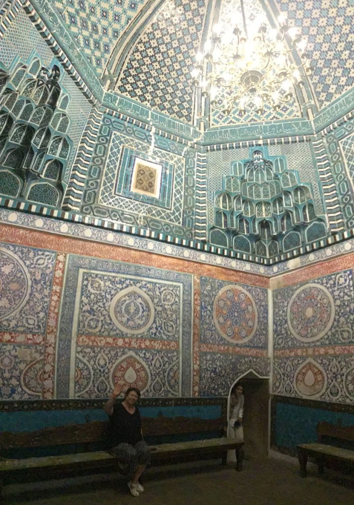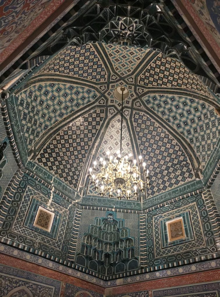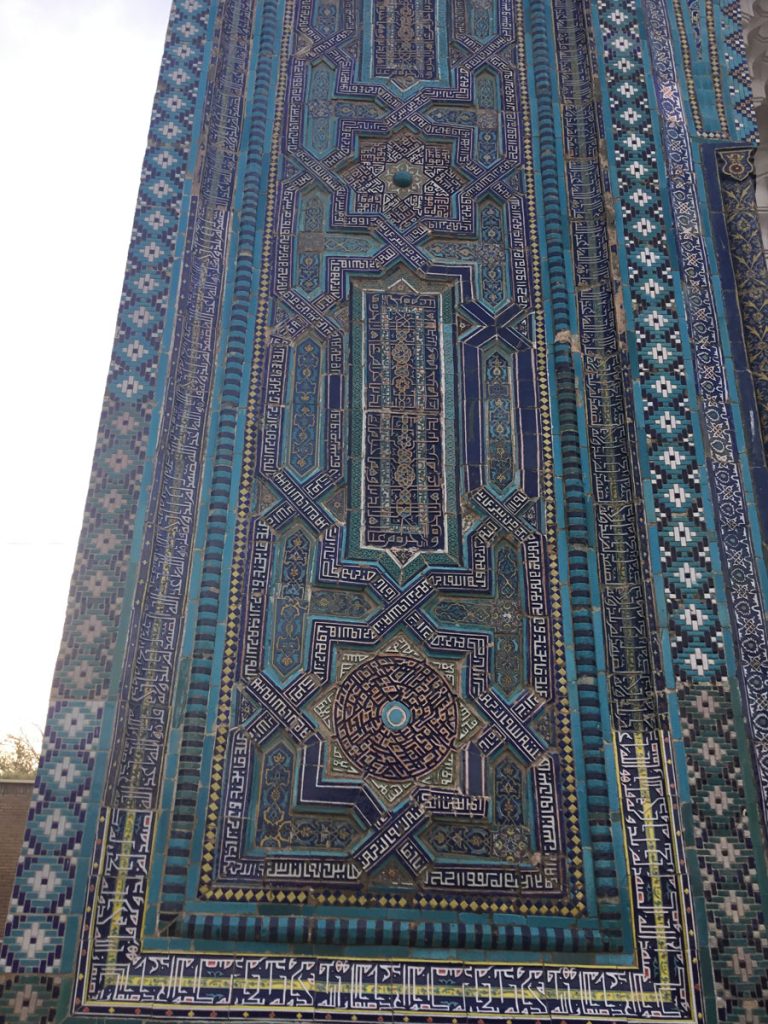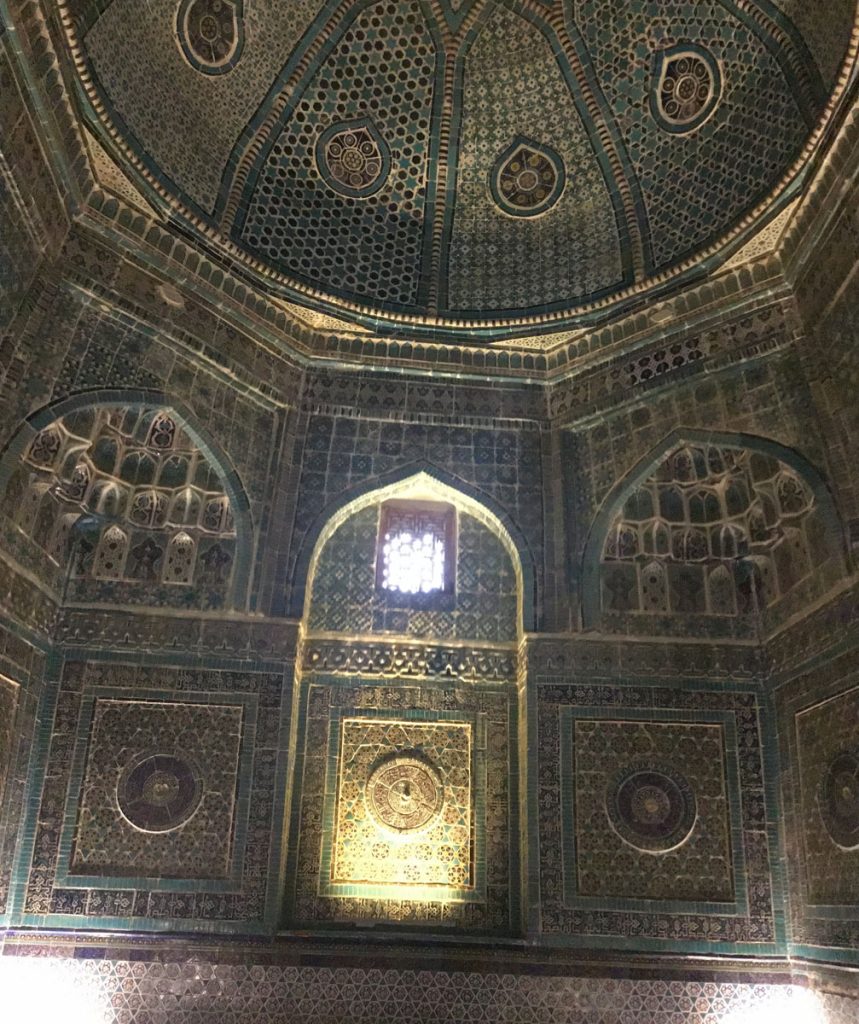 Şah-ı Zinde’nin göz alıcı türbe caddesinde yürürken zengin çini işçiliğini izliyoruz. Yavaş yavaş Şah-ı Zinde Kompleksinden ayrılıyoruz.