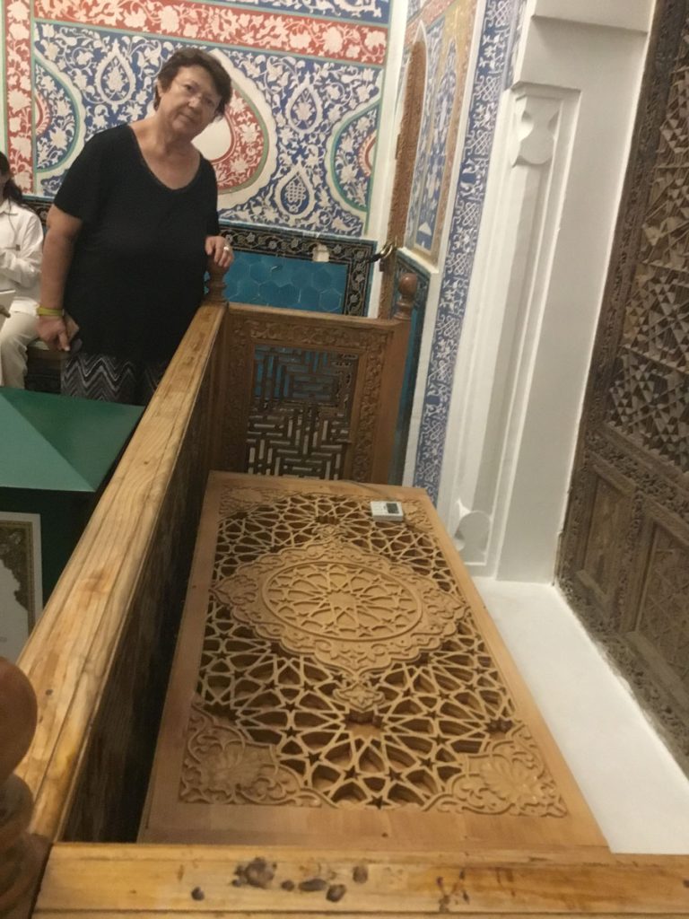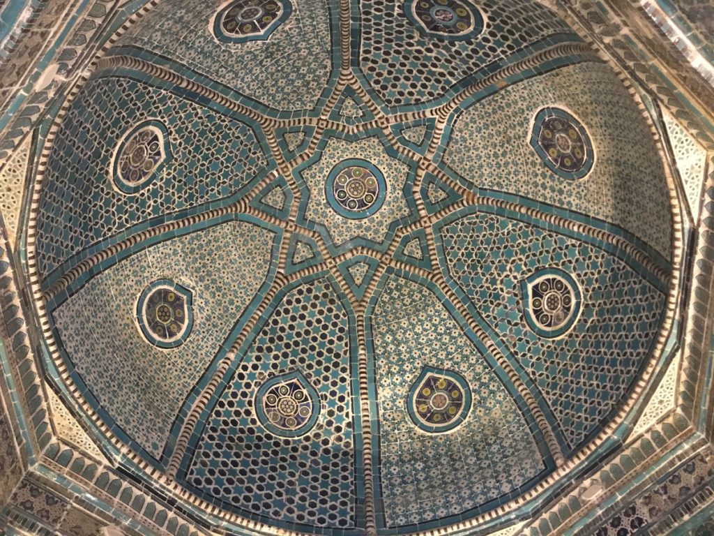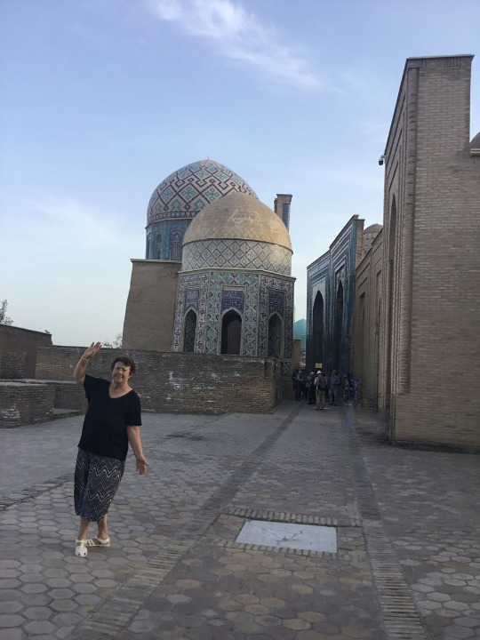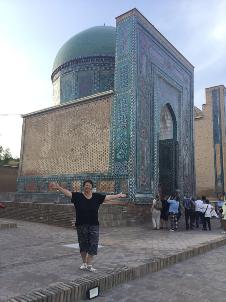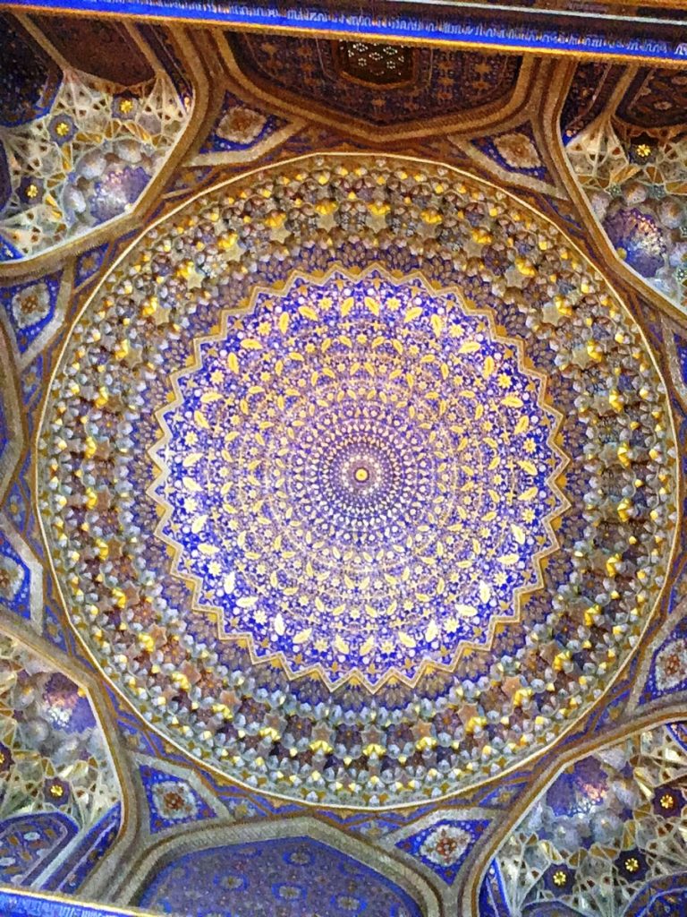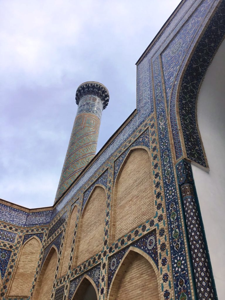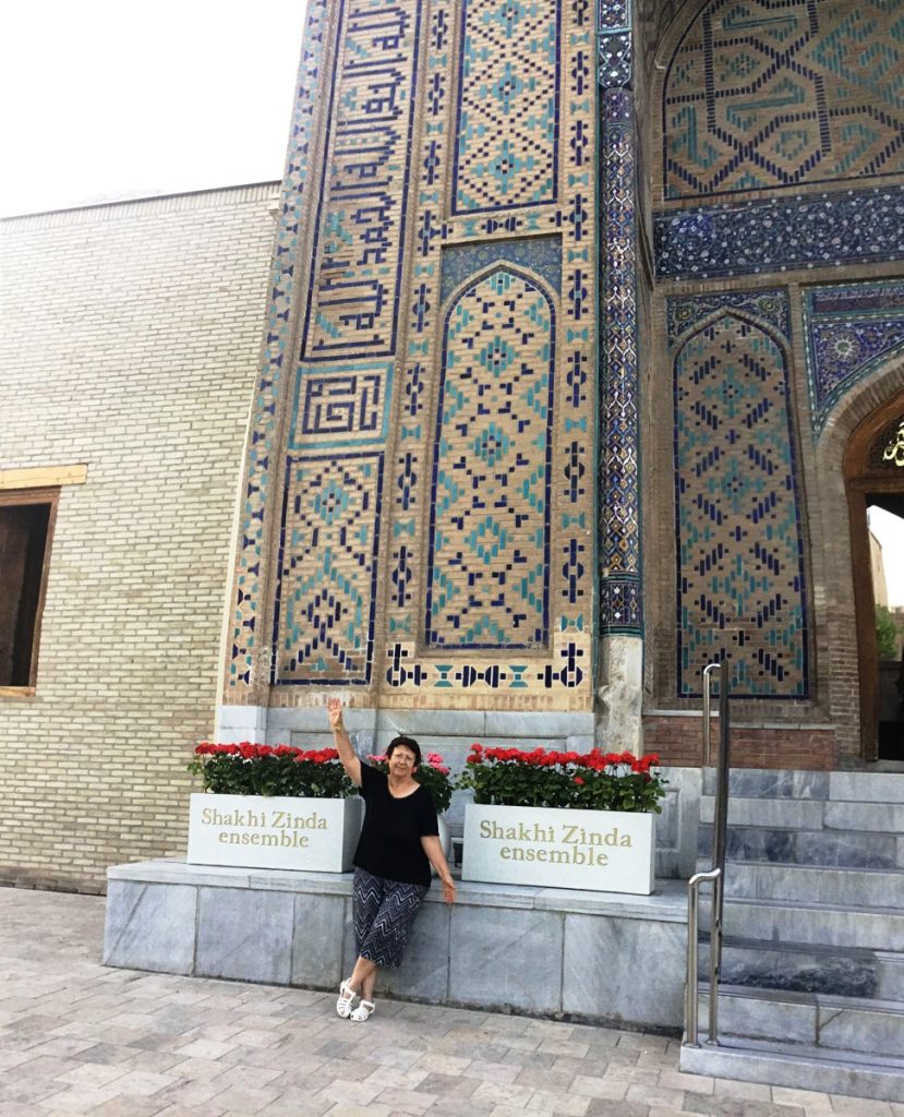 Şah-ı Zinde’nin göz alıcı türbe caddesinde yürürken zengin çini işçiliğini izliyoruz. Yavaş yavaş Şah-ı Zinde Kompleksinden ayrılıyoruz.