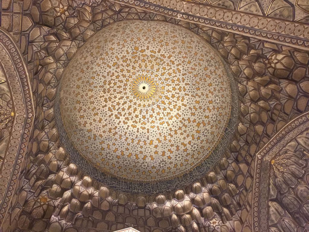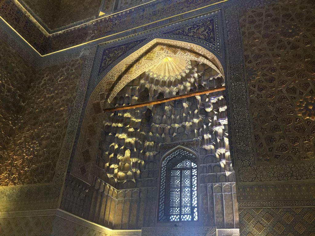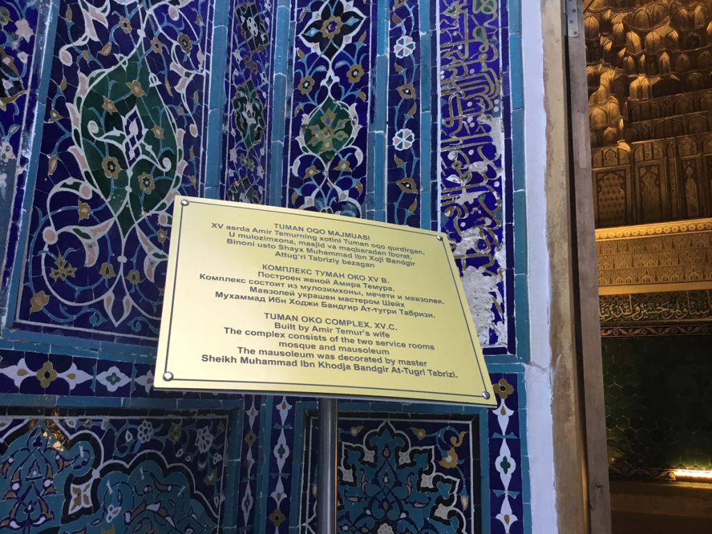 Timur’un torunları tarafından inşa edilen bu yapı, mimarlık tarihi açısından önemlidir. Türbe yivli masmavi kubbesi ile ilgi çekicidir. Külliyenin avlusu, köşelerinde dört minare bulunan tek bir süsleme duvarı ile dekore edilmiş. Kubbedeki kabartmalı rozetler, yıldızlı gökyüzünü tasvir eder. Türbenin içi muhteşem görünüyor. İç mekan, pencerelerdeki kafes örgüler, resimlerle kaplı mermer, oymalar ve yarı değerli taşlarla süslenmiştir. İç kubbe, odanın ortasındaki yüksek kafesli pencerelerin etrafında. Mukarnaslar, düşen yıldızlar gibi, pencerenin üzerindeki kemerden sarkıyor