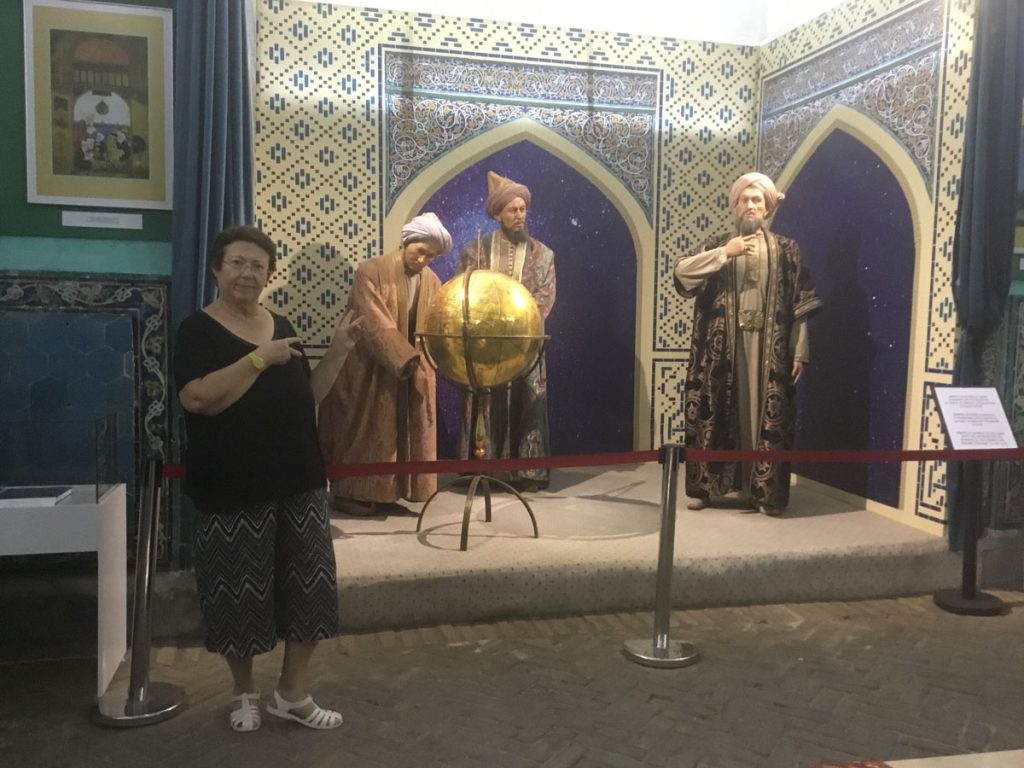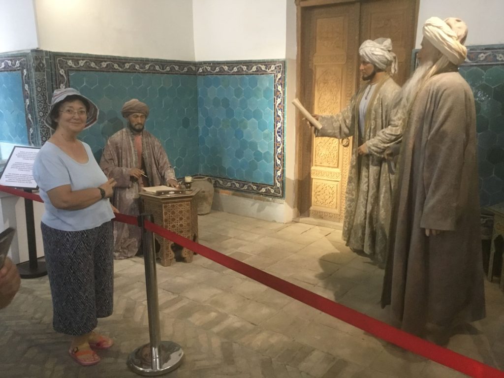 Uluğ Bey medresesi içerisindeki müzeyi geziyoruz. Müzede 2020 yılında yazılmış 302 sayfalık 60×80 cm ebatlarında Kur’an bulunmaktadır. Uluğ Bey, Ali Kuşçu’nun, Registan Meydanı’nın maketleri, Müderrisler ve öğrencilerinin derslerini anlatan görseller bulunmaktadır.
