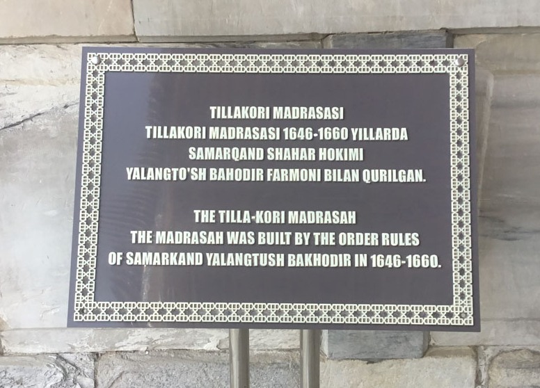 Tilla-Kari Medresesi Uluğ Bey Medresesi’nin yapımından 200 yıl sonra meydana en son yapılan 1647-1659 yılları arasında inşa edilen Tilla Kori Medresesi, “Altın Kaplamalı Medrese” olarak anılmaktadır.