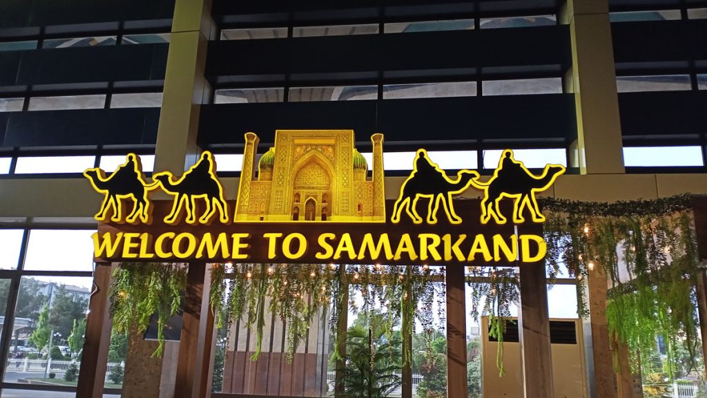 Sizler buraya nasıl gelirim derseniz?, bu şehre ülkenin her yerinden gelmek kolay. Eğer otobüs saatlerini uydurabilirseniz Taşkent ana otogarından gelmek kolay. Taşkent’ten hızlı tren ya da normal tren ile gelebilirsiniz. Tren ya da otobüs saatleri de uymazsa paylaşımlı taksiler ile gelmek mümkün. Paylaşımlı araçları Taşkent otogarı önünde bulabilirsiniz. Konaklama yaptığınız yerdeki görevliler de yardımcı oluyor. Sizi otelinizden alacak bir araç ayarlıyorlar. Semerkant’a geldik.