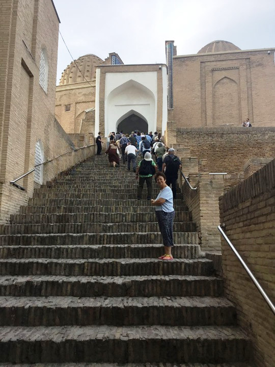 Semerkant’ta şimdiki durağımız Timur İmparatorluğu’nun 4. sultanı, Emir Timur’un torunu gök bilimci Uluğ Bey tarafından 1428 yılında yaptırılan ve 15. asır mimarisinin ender örnekleri arasında gösterilen Uluğ Bey Rasathanesi. Rasathaneye geldiğimizde geniş merdivenlerden yukarı doğru çıkıyoruz.