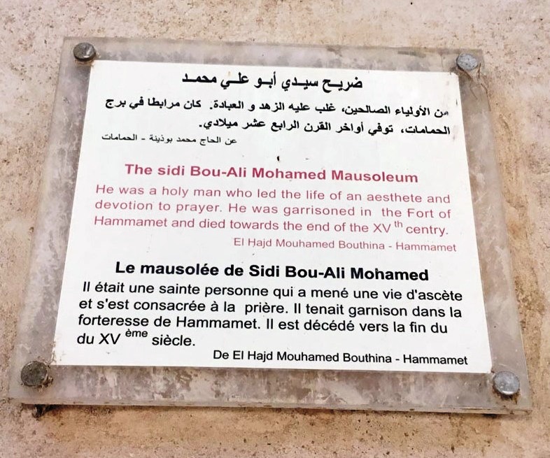 Kaleden çıkmadan avluda bulunan Sidi Bou Ali Mohamed Mozolesini ziyaret ediyoruz. Bu zat kendisini ibadete adamış dindar bir hayat süren ve Hammamet Kalesi’nde garnizonda görev yapan bir kişi.