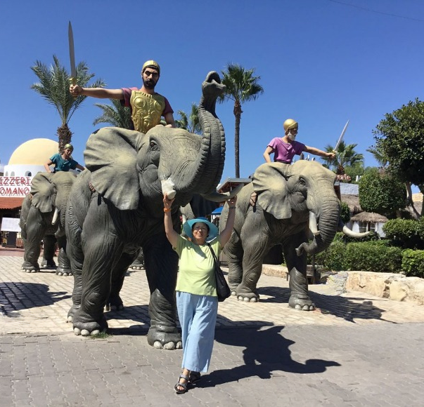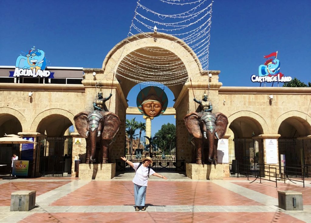 Dışarıda surların yanından deniz kenarına doğru gidiyoruz, eğlence parkı Carthage Land’in tanıtıldığı köşede bir fotoğraf molası veriyoruz.
