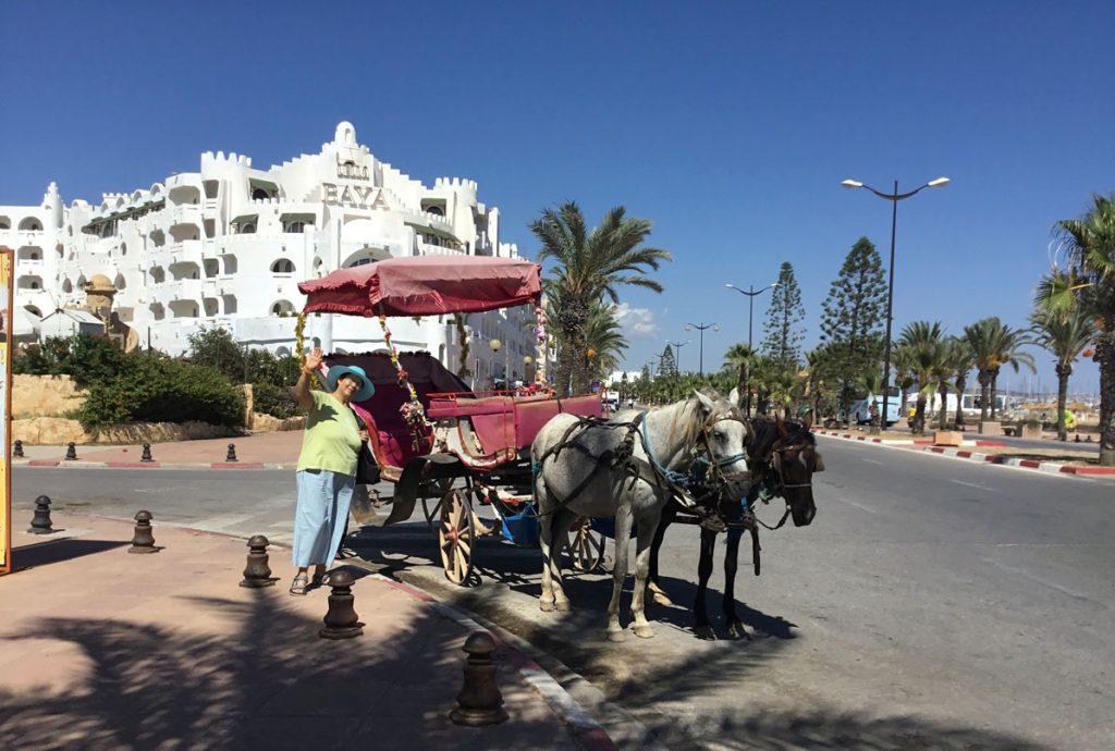 Denizin hemen yanında beyaz badanalı evlerden, otellerden ve dükkanlardan oluşan medina’da deniz kenarında plajda denize girenleri izliyoruz. Eğer isterseniz median içerisinde yürümekten yorulduysanız fayton ile de medina’yı dışarıdan dolaşabilirsiniz.