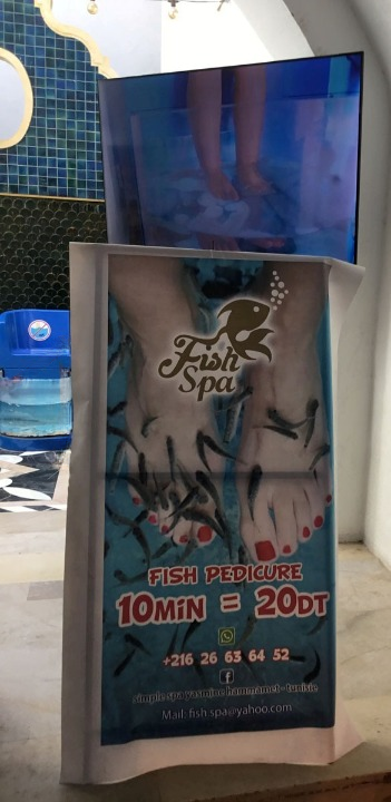 Medina içerisinde talassoterapi bakım üniteleri mevcut. İşte balıklar ile ayak bakımının yapıldığı bir merkezden geçiyoruz.