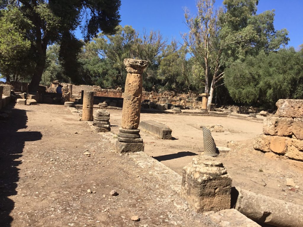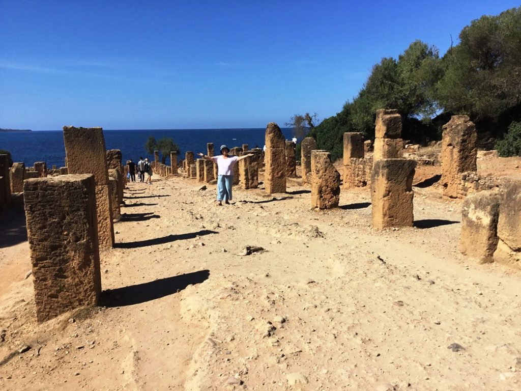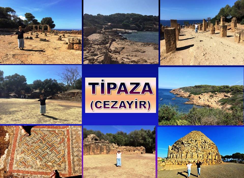 Öncelikle Albert Camus’a ilham veren ve ünlü eseri “Noces à Tipas (Tipasa’da Düğün)” nın yazılmasına neden olan mozaiklerinin üzerinde yürüdüğümüz, Hristiyan Bazilikasını, tiyatrosunu göreceğimiz, muhteşem deniz manzaralı, Antik kent Tipasa’dayız. Tipasa arkeolojik alanı, Mağrip’in en olağanüstü arkeolojik komplekslerinden birini ve belki de MÖ 6. yy’dan MS 6. yy’a kadar yerli uygarlıklar ile farklı temasların incelenmesi açısından en önemli. Bu kıyı kenti, ilk olarak Kartacalıların ticaret merkeziydi.