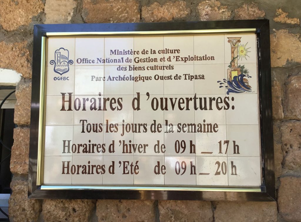 Tipaza Antik Kenti ziyaret saatleri kış ve yaz mevsimine göre değişiklik göstermekte. Kent haftanın her günü açık. Kışın 09.00-17.00/Yazın 09.00-20.00. Giriş ücretli.