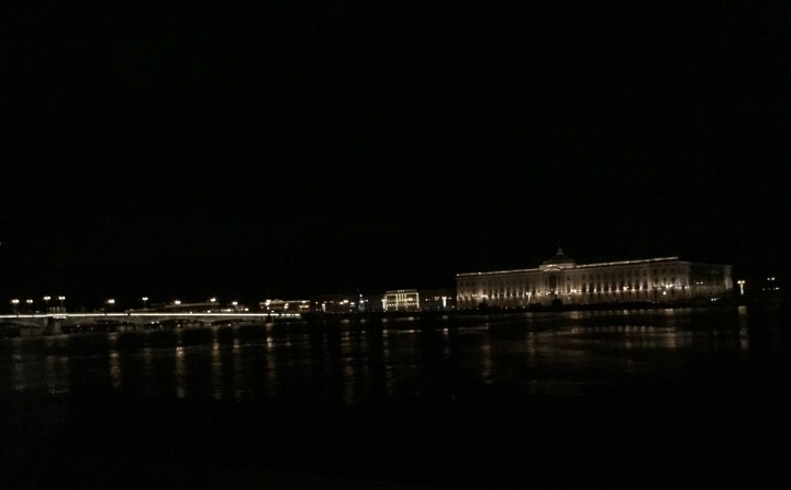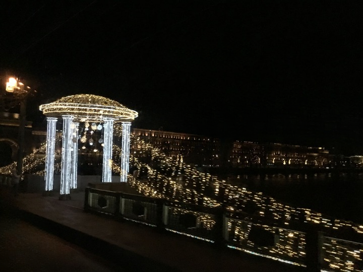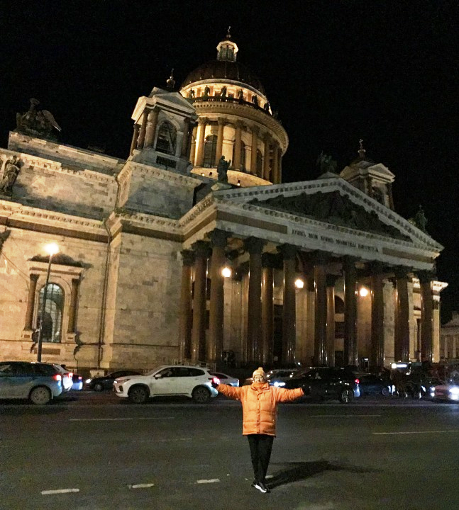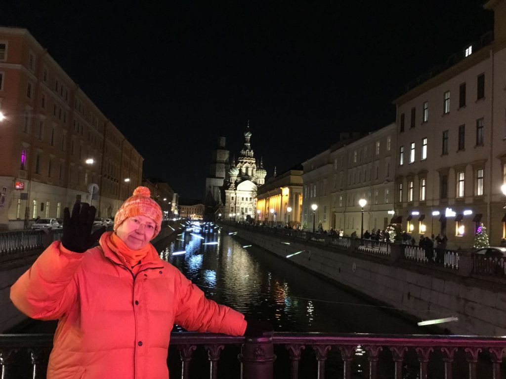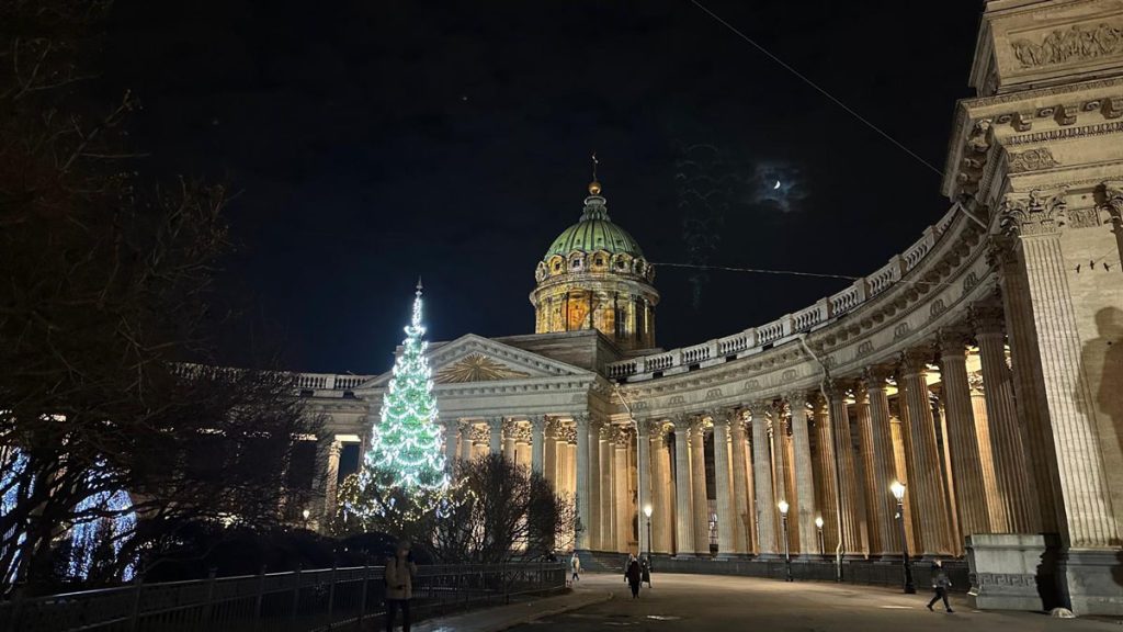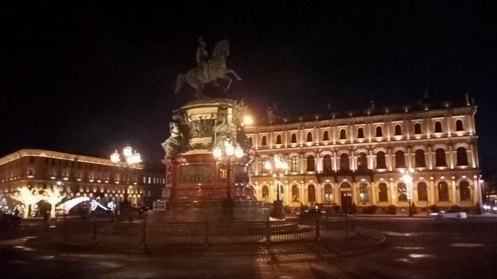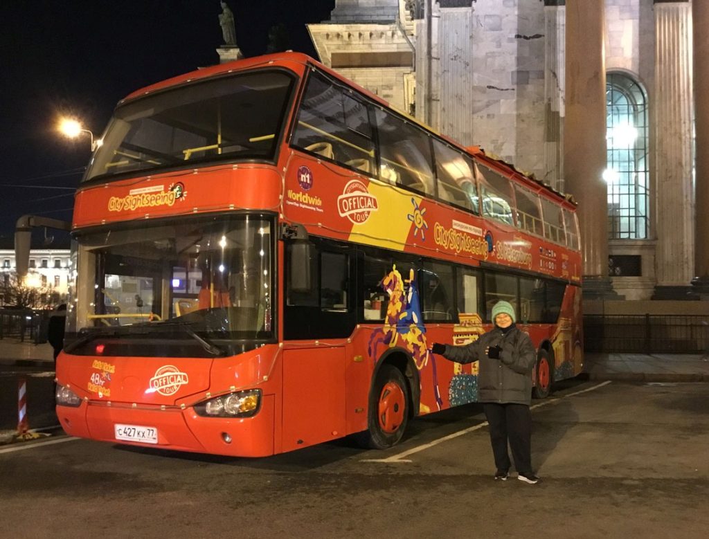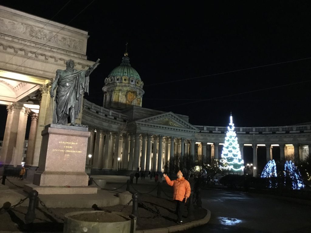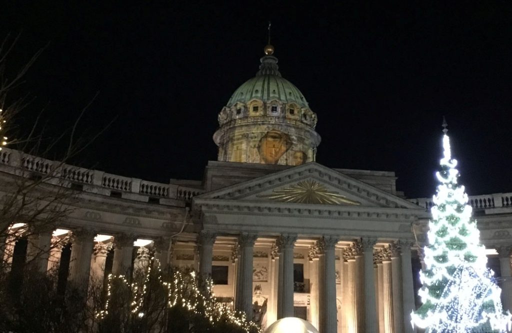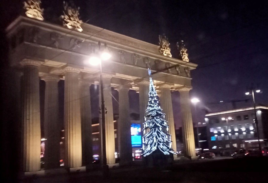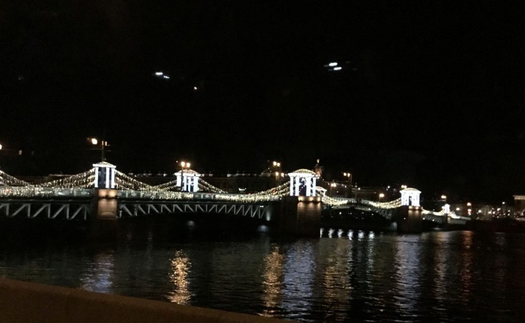 Para bozdurma işlemleri sonrası St. Petersburg’u panaromik olarak görüyoruz. Trafik ve para bozdurma işlemleri uzayınca şehirde hava karardı. Zaten bu mevsimde kuzeyde hava saat 15.00’de sonra kararıyor. Sabah saat 10.00’dan önce ağarmıyor. Otele gitmeden önce akşam karanlığında görebildiğimiz yerler biraz kısıtlı oldu. Neyse ki St. Petersburg’a daha önce üç kez geldiğimiz için bizim açımızdan çok sorun olmadı. St. Petersburg’da gündüz gördüğümüz yerler ile ilgili yazımız burada. Biz yılbaşı öncesi buraya geldiğimiz için Noel hazırlıkları yapılmış, her taraf ışıl ışıl göz alıcı.