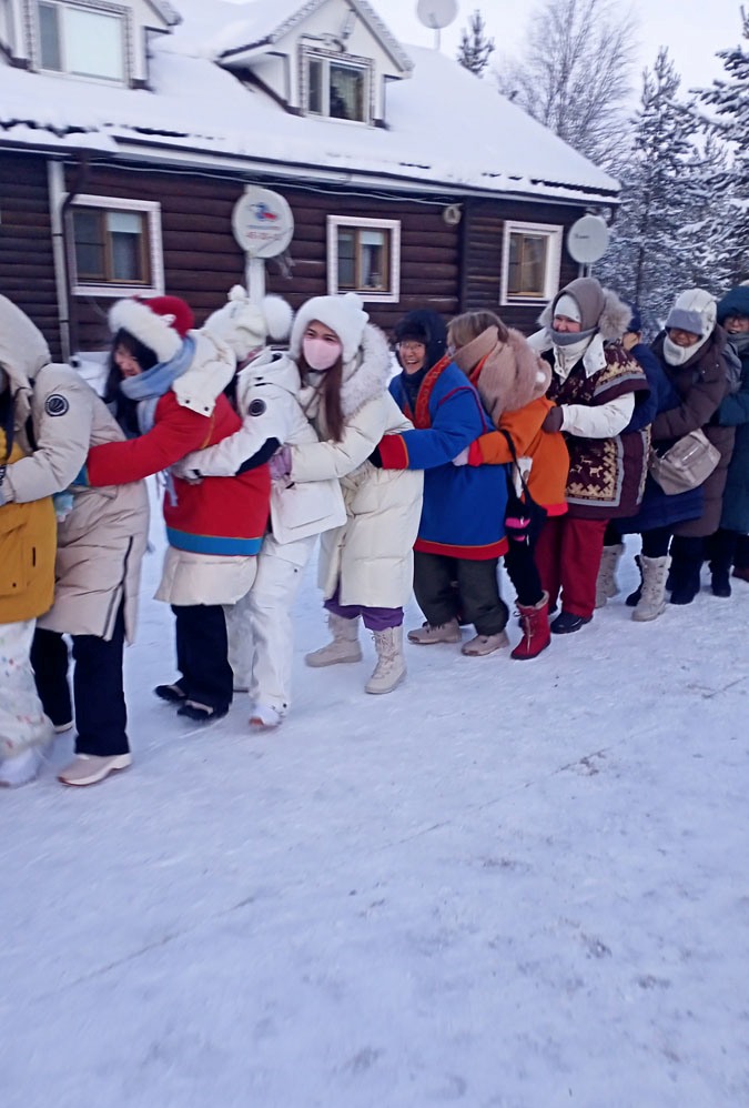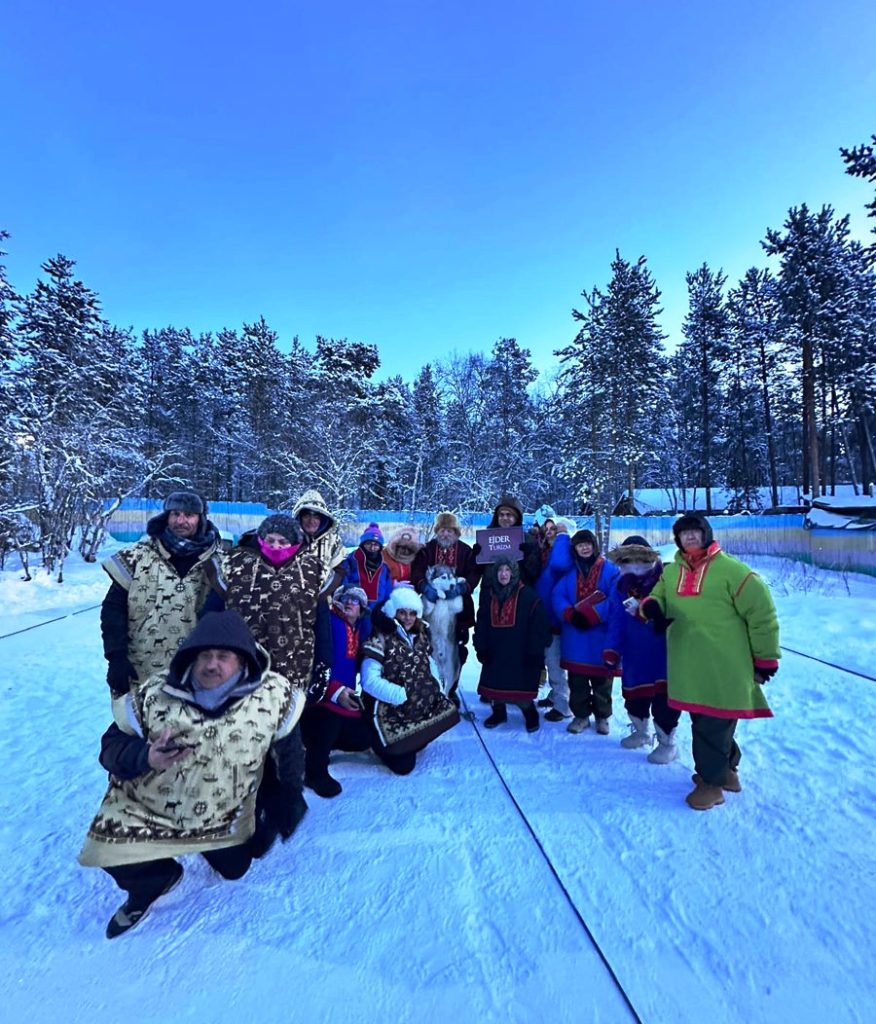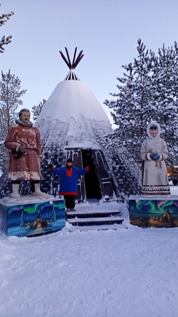 Kirovsk’da aktiviteleri bitirip Murmansk’a doğru yola çıkmadan önce Kola Yarımadasında bulunan Saami Köyüne gidiyoruz. Köye geldiğimizde girişte hepimize buraya özgü el yapımı üzerinde burayı anlatan kolyeler verdiler. Kirovsk gezimiz burada.