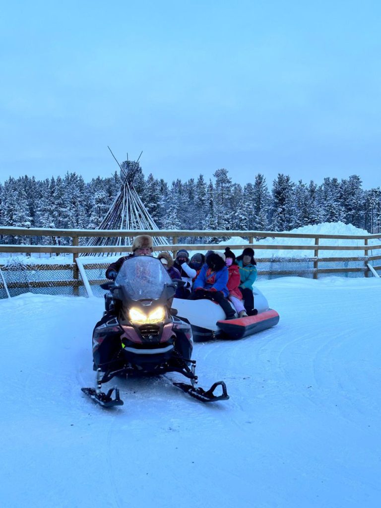 Ren geyiklerinin yanından ayrılıyor ve yine yerel rehberimizin eşliğinde ren geyiklerinin çektiği kızaklara 5 kişilik gruplar halinde biniyoruz. Sürücümüzün oldukça hızlı, sürdüğü kızakta düşmemek için zor tutunuyoruz. O kadar hızlı ki düşenler bile oldu.