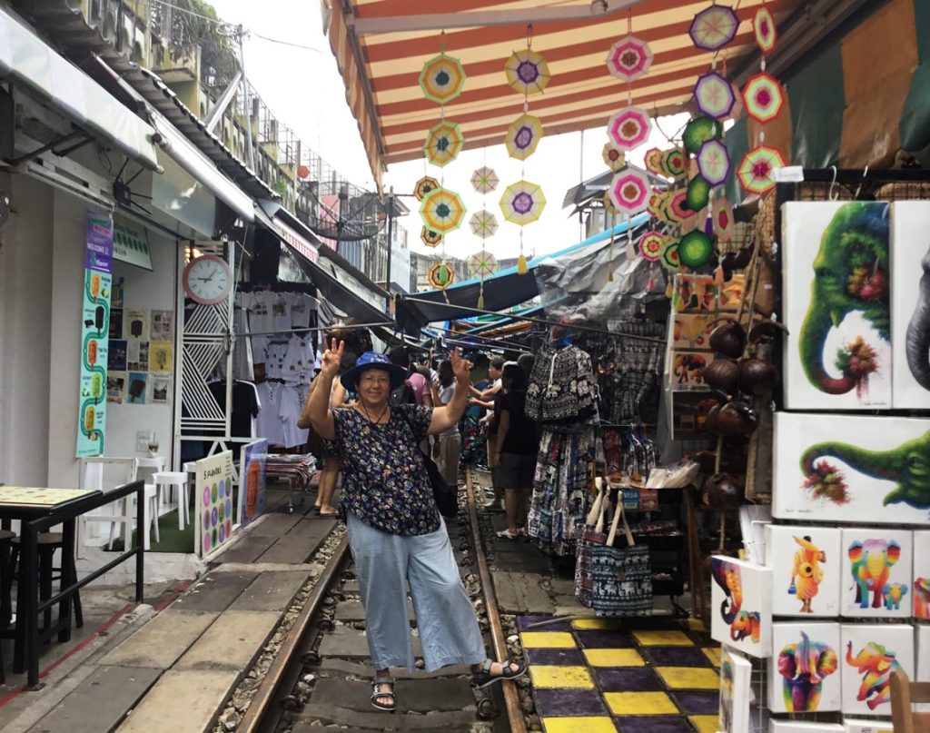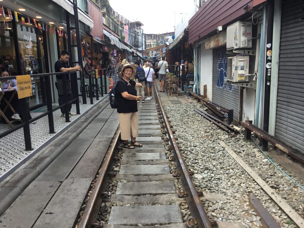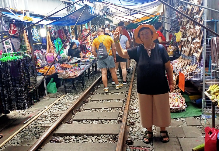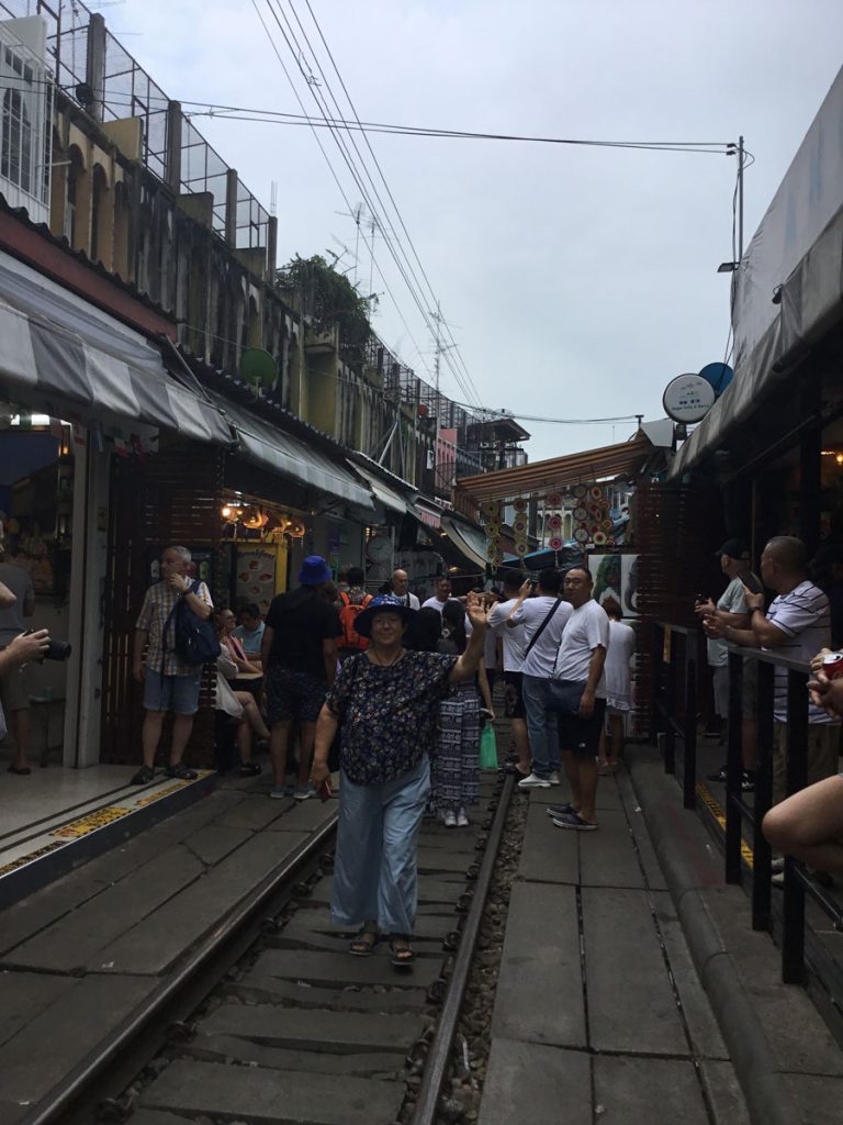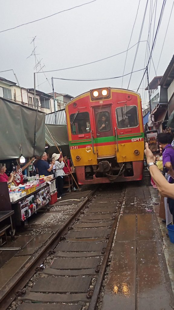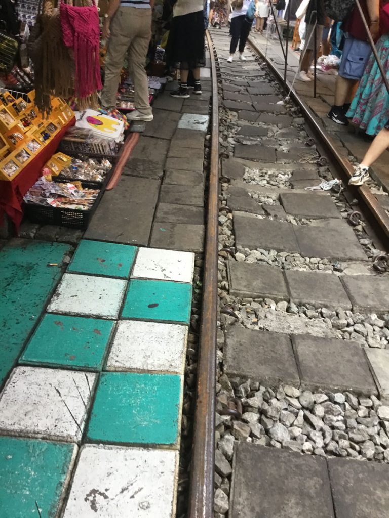 Bangkok’a gelmeden ününü çok duyduğumuz bu pazar Bangkok’a yaklaşık 80 km uzaklıkta. Dünyanın en sıra dışı pazarlarından biri olarak bilinen pazarın en dikkat çekici özelliği, aktif bir tren hattının tam üstünde kurulmuş olması. Pazar, 1905 yılında kurulmuş ve o günden bu yana yerel halk için önemli bir ticaret merkezi. Bu pazar sunduğu ürünler bakımından diğer pazarlardan çok farklı değil ama onu farklı kılan konumu: pazar demiryolu raylarının üzerinde 100 m’den fazla bir alana yayılmakta.