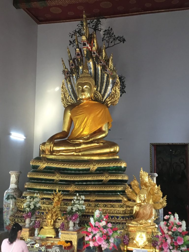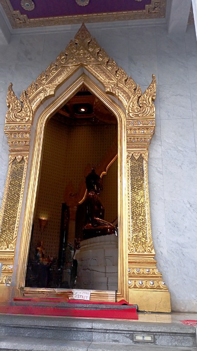 Bağdaş kurmuş oturur pozisyondaki (Maravijaya) Buda, aydınlanmayı temsil eder. Tapınaktaki Buda heykeli, 13-15.yy Sukhothai dönemine ait olup 5,5 ton ağırlığında saf altından yapılmış.