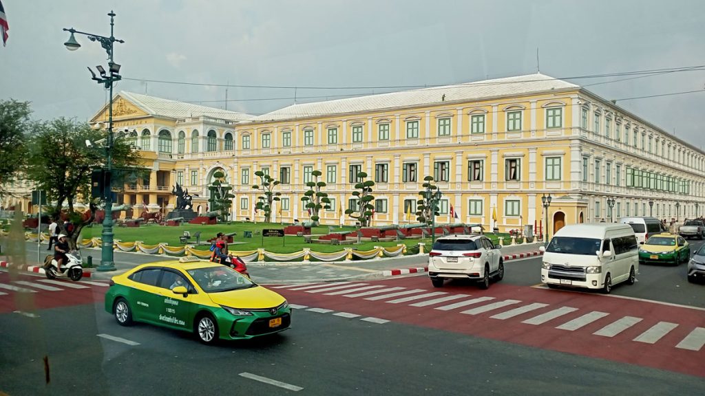 Havalimanından bindiğimiz otobüsümüz ile Bangkok’u panoramik olarak başlayan yolculuğumuzda hem rehberin anlattıklarına kulak verip hem de fotoğraf çekebilmek için sağlı sollu camlara yapışmış şekilde yola devam ediyoruz ve karşımıza bembeyaz görüntüsü ile Grand Palace (Büyük Saray) çıkıyor.