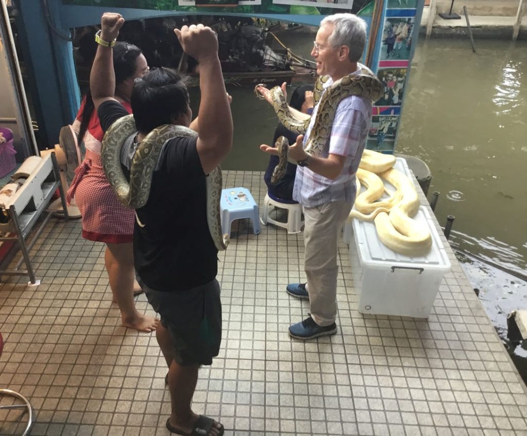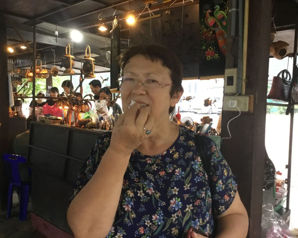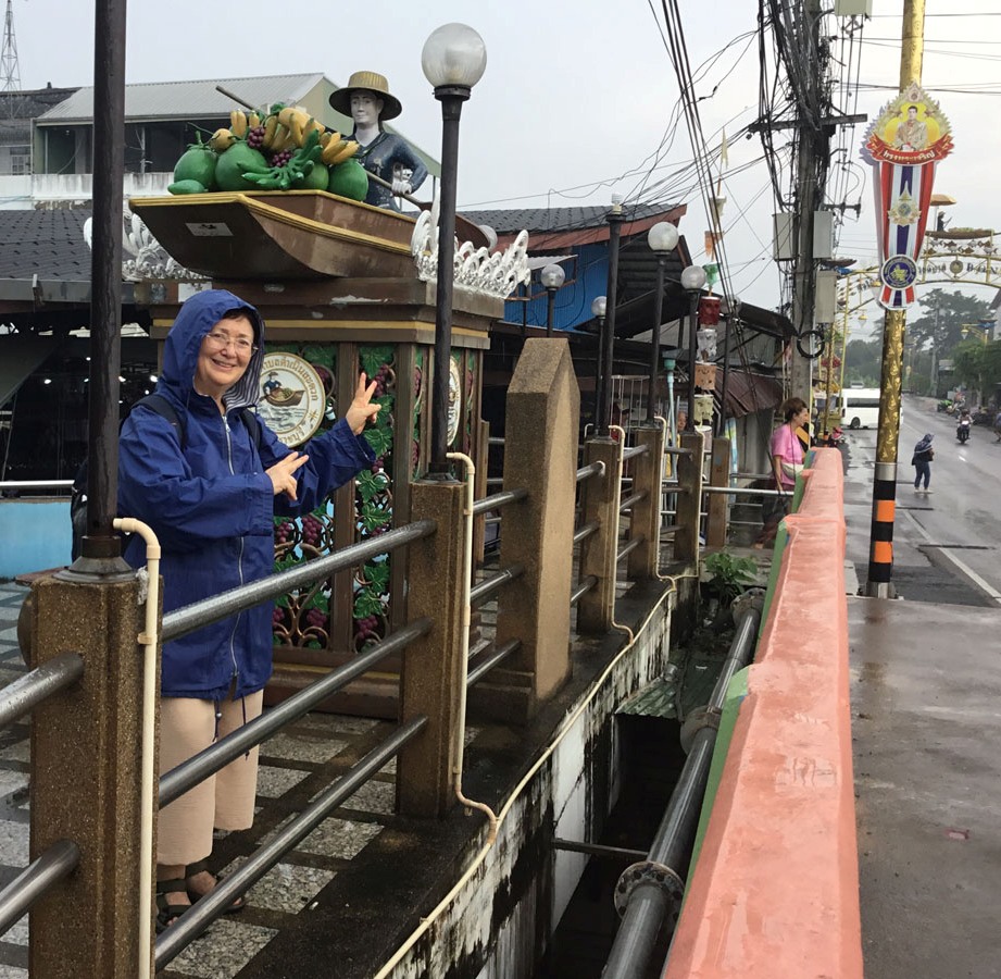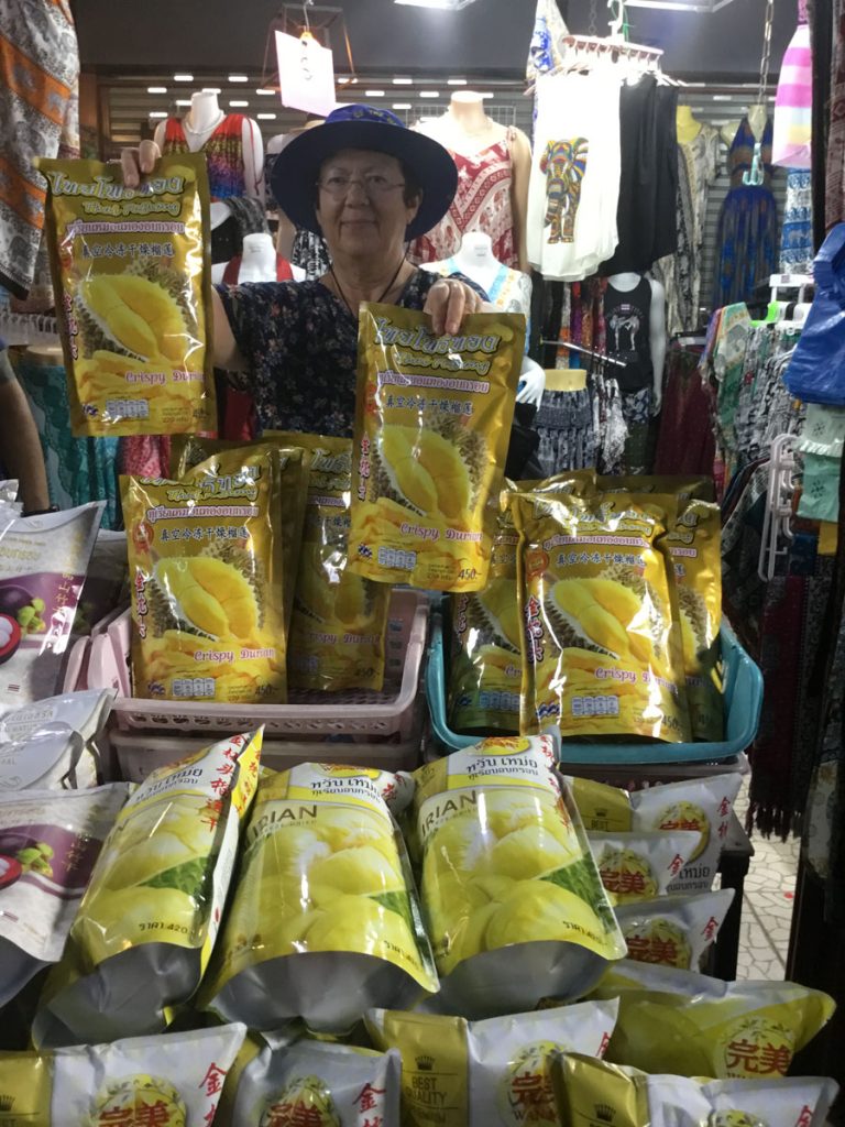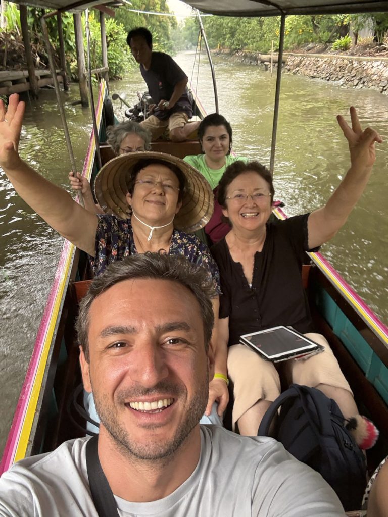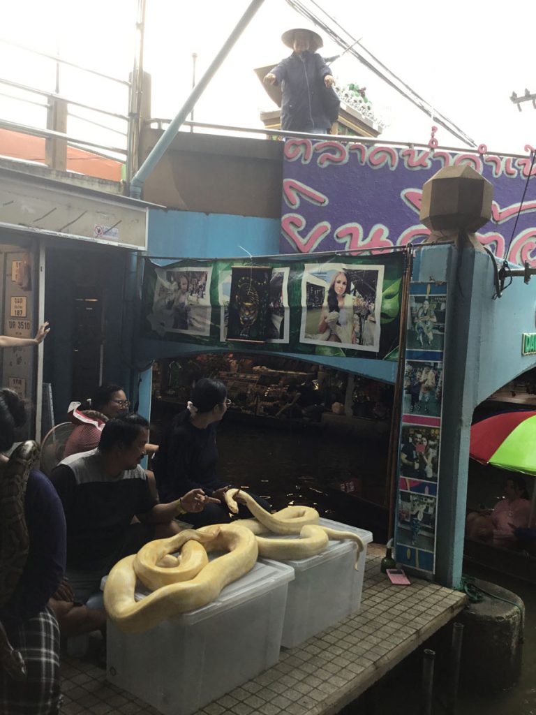 Sonra çarşıyı dolaşmaya devam ettik. Kanal boyunca yüzen teknelerde satılan tropik meyveler, baharatlar, hediyelik eşyalar ve geleneksel Tay yemekleriyle buluşmak farklı bir deneyim. Tekneyle dar kanallarda gezinmek, geleneksel Tay evlerini, ahşap köprüleri ve kıyıda sebze meyve satan yerel halkı görmek çok heyecan verici. Ancak çarşı ününden dolayı çok aşırı kalabalık. Motorlu teknelerden kaynaklanan kirlilik, havayı nefes almaya zorlaştırıyor. Bir tavsiye bazen tekneler çok sıkışık duruma geliyor, ellerinizi tekne kenarlarında sakın tutmayın ve fotoğraf çekerken telefonlarınıza dikkat edin.
