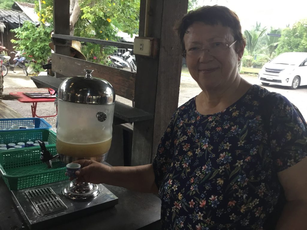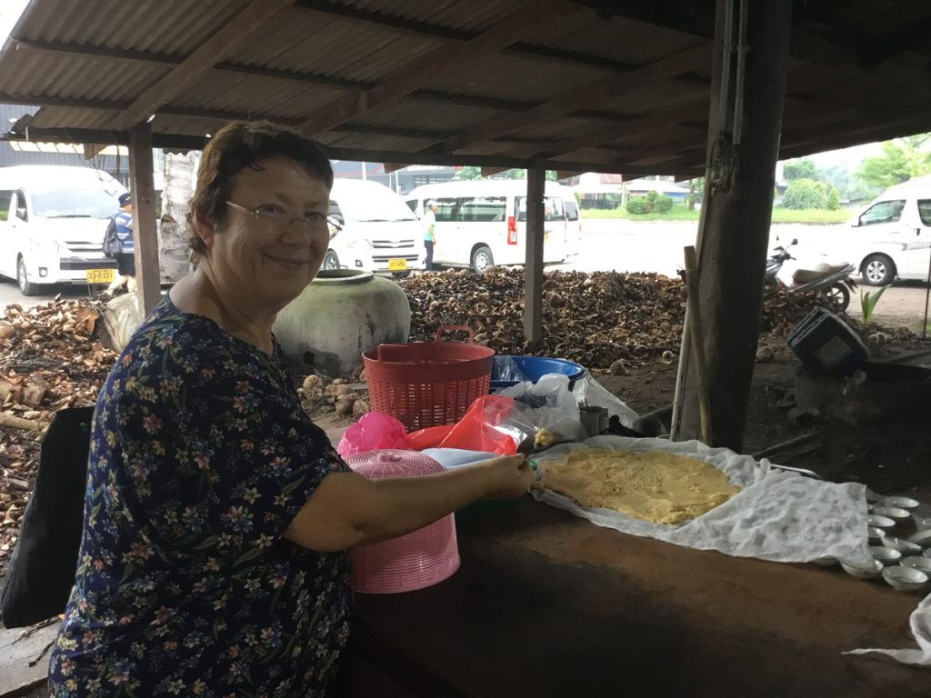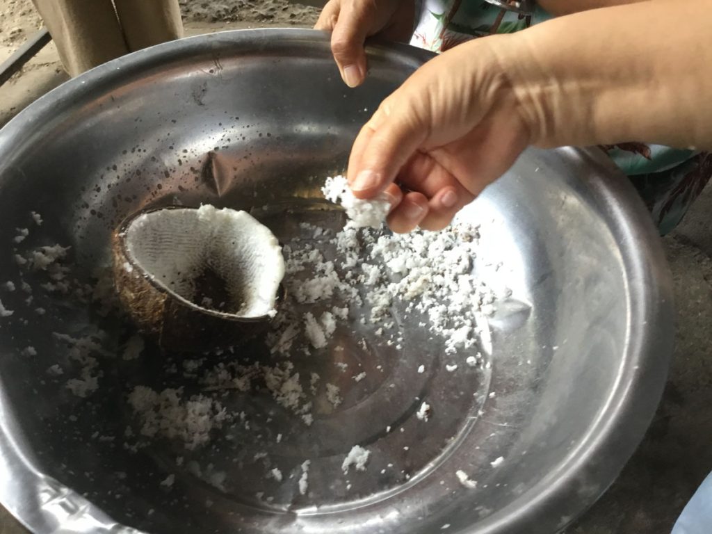 Hindistan cevizi ile yapılmış ürünlerin nasıl yapıldığını izleyip, tadına bakıyoruz. Daha doğrusu Nesli bakıyor, benim hindistan cevizi ile pek aram yoktur.