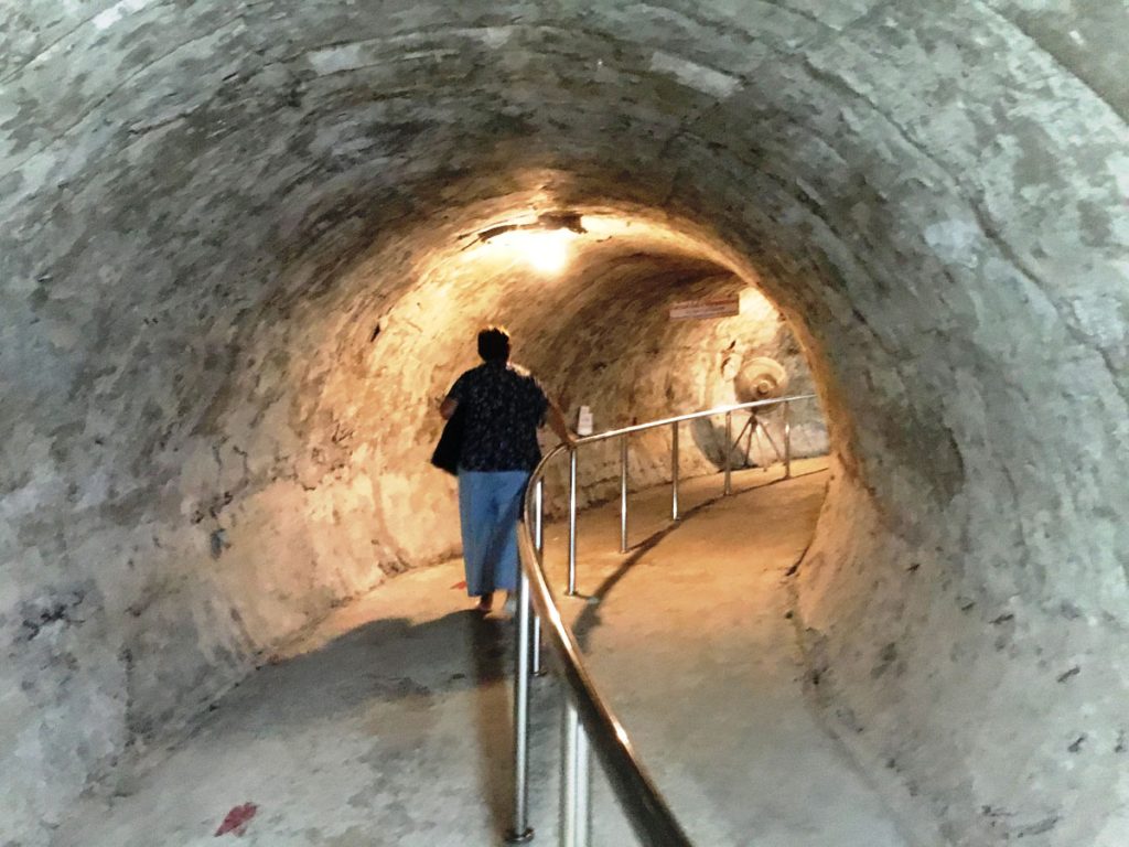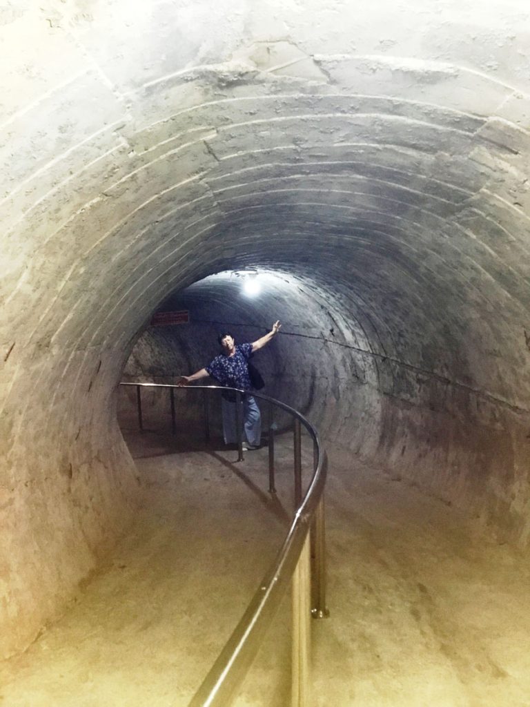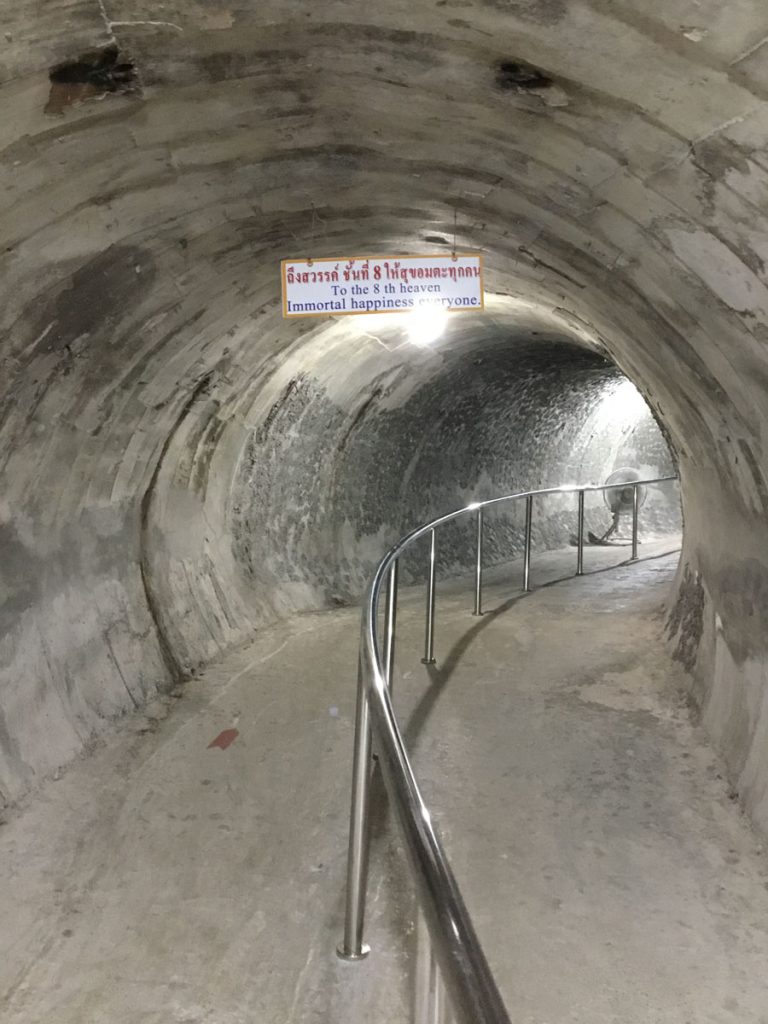 Bu ziyaretin en güzel yönlerinden birisi bizce ejderhanın gövdesinin içinden yukarı doğru kıvrılarak çıkmak. Ejderhanın içine yöneliyoruz. Yol biraz dik ve çıplak ayakla yürümesi biraz zor. Tam 17 katı dönerek çıkmaya başlıyoruz. Katlar arasında ilerlerken Budist öğretileri görülüyor. Yukarı doğru ilerlediğimiz tünel çok sıcaktı (vantilatörler çalışıyordu ama çok etkisi yoktu) ve tünelin içindeki beton zemin bazı yerlerde oldukça kaygandı, özellikle inişte tehlikeli olabilir. Tırmanış biraz uzun olsa da yukarı çıktığınızda kendinizi yorgun hissetmiyorsunuz.