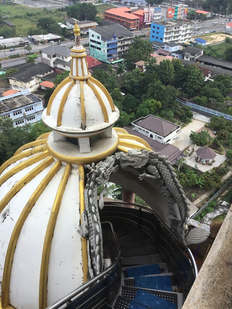 Tünel bittiğinde, ejderhanın başının altına çıkmak için yaklaşık 15 basamak daha çıkıyoruz. Ejderhanın ağzına para atmanın iyi şans getirdiği söyleniyor. Ejderhanın başının altında sevap kazanabileceğiniz ve dilek tutabileceğiniz bir Buda heykeli de var. Hele zirveye ulaştığımızda gördüğümüz manzara mükemmel. Yukarıda sanki huzur ve sessizlik vardı. Burada biraz oyalandık, fotoğraflar çektik ve aşağıya indik.