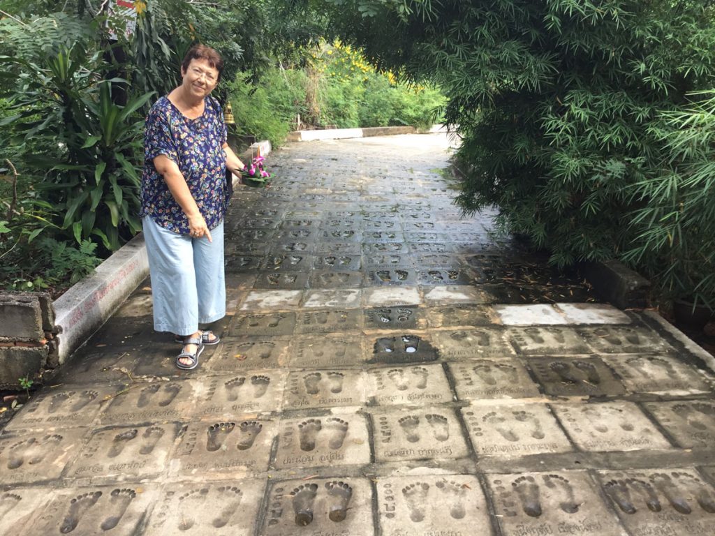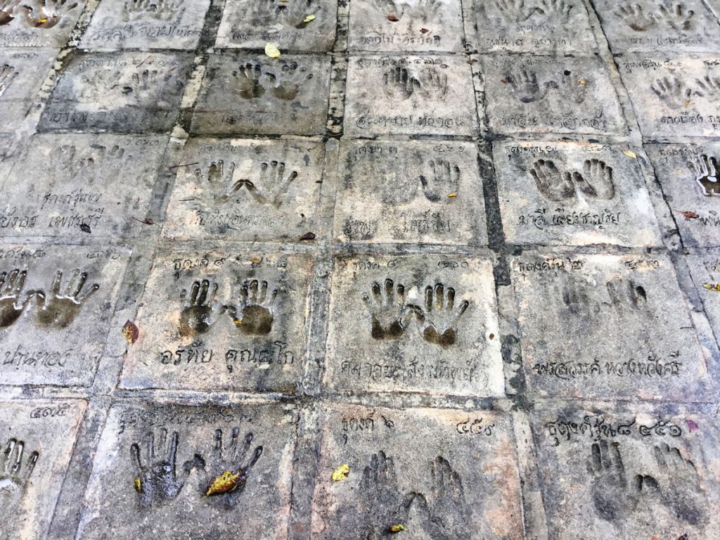 Dışarıyı dolaştığımızda kaldırımlar üzerinde el ve ayak izleri görüyoruz. Burada tapınağın yapımında çalışan kişilere ait olduğunu öğreniyoruz.
